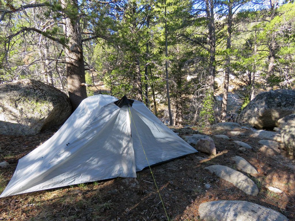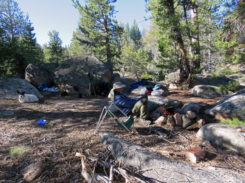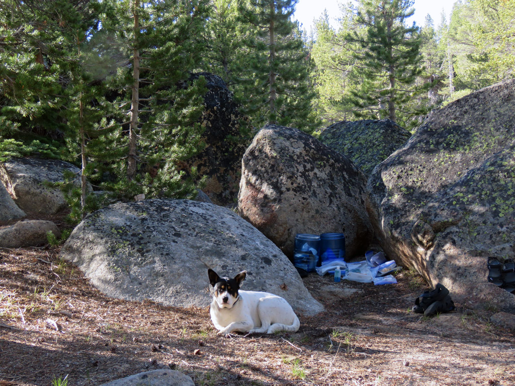 Dawg relaxes in camp while we make breakfast. He knows he's getting a left over blueberry pancake, no need to rush. | ||