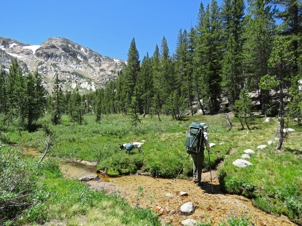 Dawg will not stop to drink unless you stop. He is driven to stay with you. Knowing this is important to prevent dehydration. I always pause at water crossings so he can lower his body temperature and drink if he so chooses. | ||