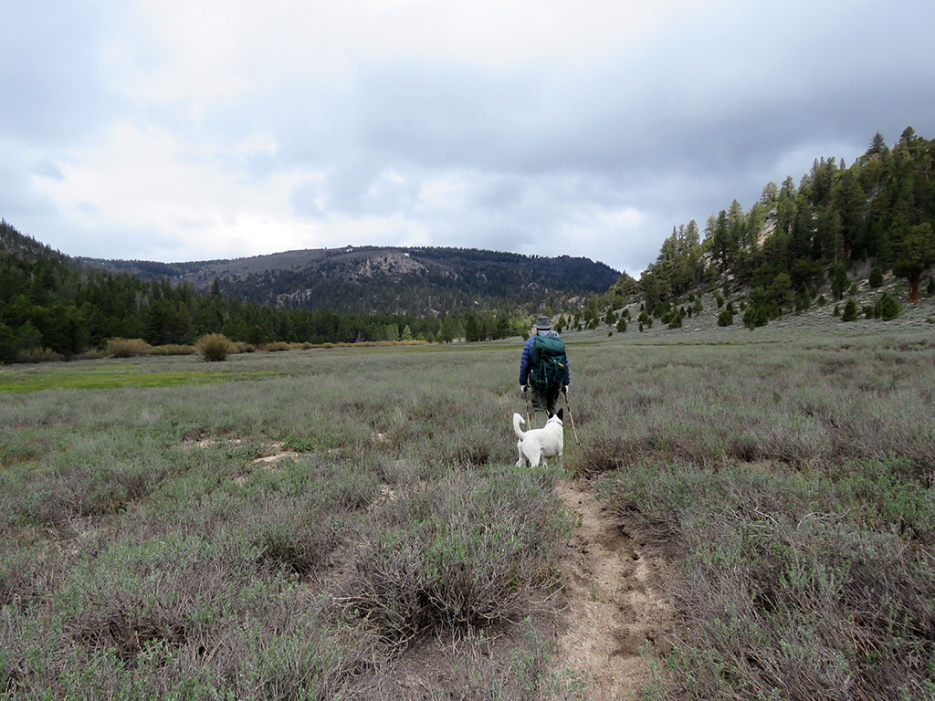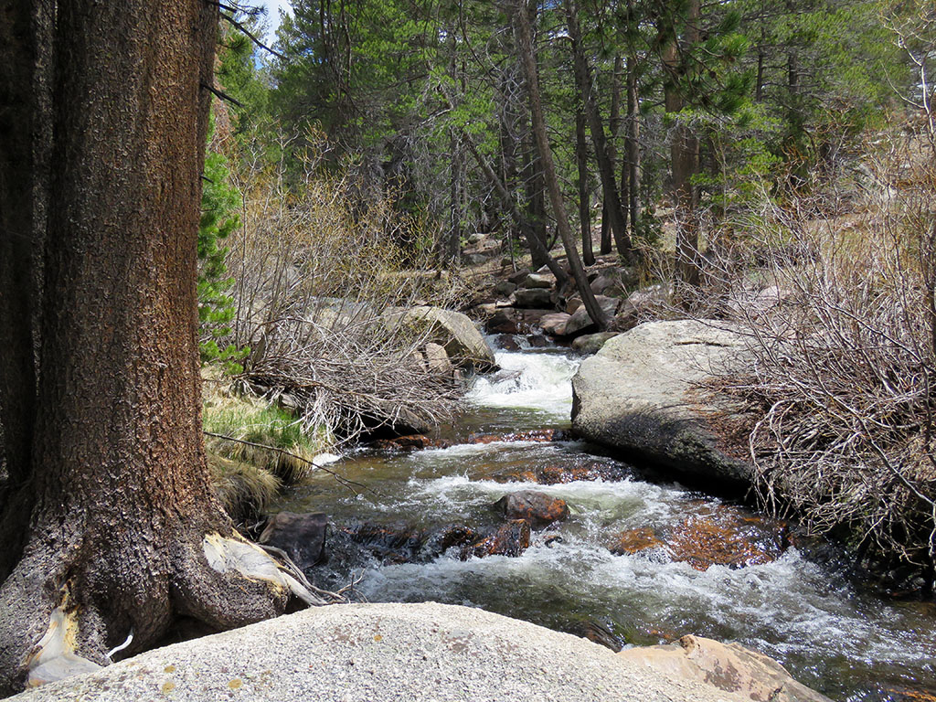 | The next day it was also supposed to rain "after 11am." With this in mind, we had limited aspirations. We set out to see if we could find a way to cross the creek and find the trail to Tamarack Lake. We found neither and returned to camp. The lake is a dead end and likely a very unpopular place to go due to its tiny size. I'm guessing we'd have had to bush-whack our way to it as any trail is likely grown over. | ||