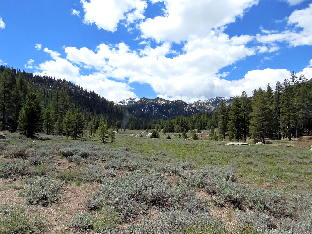 | Temperatures are great for hiking, and we are making good time up the valley. | ||