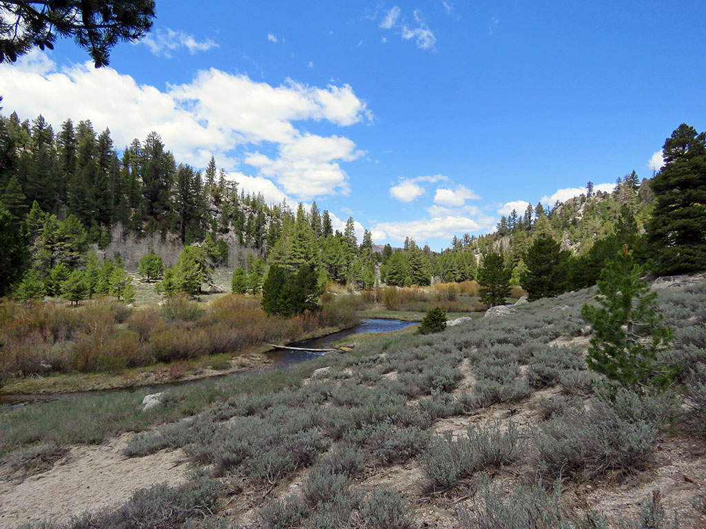 As the valley narrows and closes in on the creek, we are approaching the crossing point. This gets me wondering out loud about Dawg. You see, we went to this area last year, only last year we were traveling in the opposite direction in this valley. Even reversed, I recognize certain features that tell me where I am, and I tell Andra I see no reason Dawg wouldn't be even better at navigating the area based on memory. We'll soon have the full answer to whether Dawg is also navigating from memory before this day is done. |