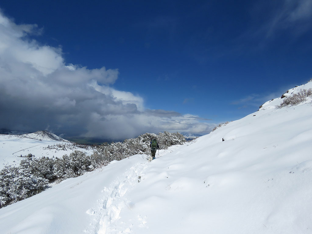 | Once on the entry trail, staying on it is easy, but the snow depth is quite high here on the "dry side" of the Sierras. | ||
