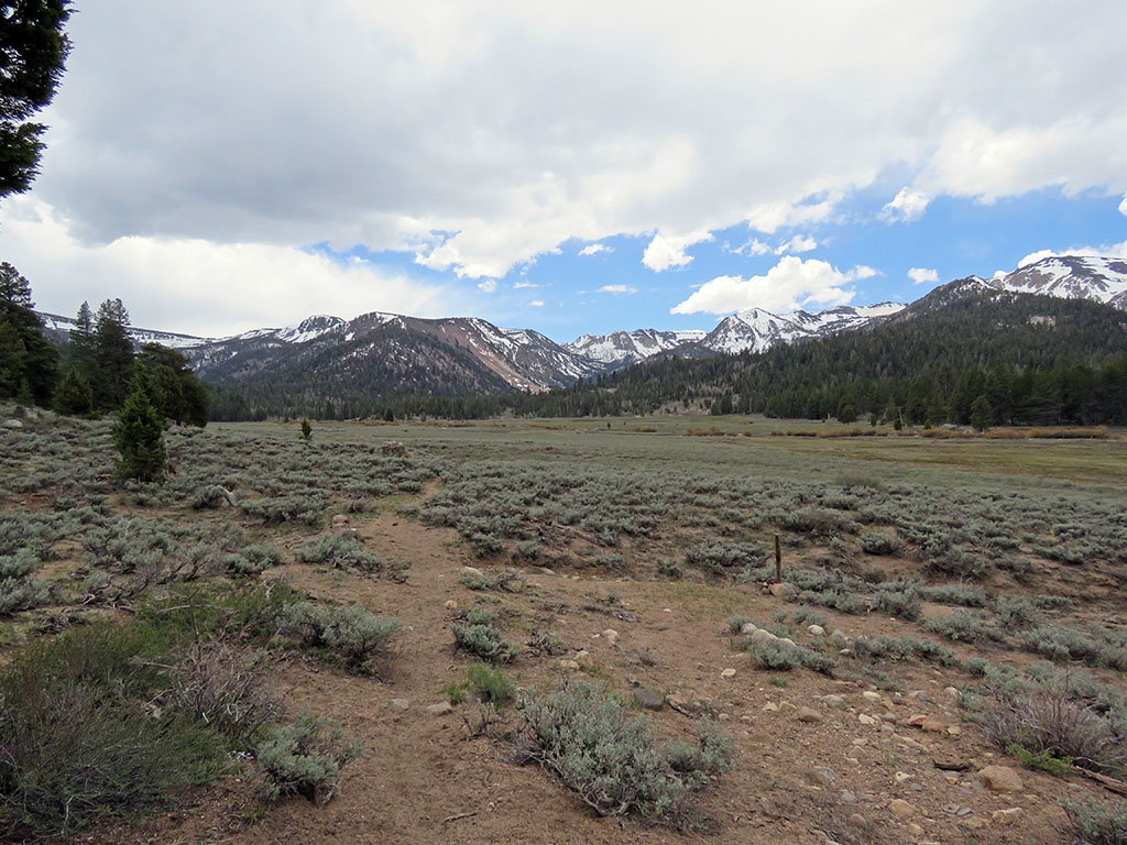 | This is the valley/meadow we're camping in, and it looks like we will arrive early enough to set camp while it is dry. | ||