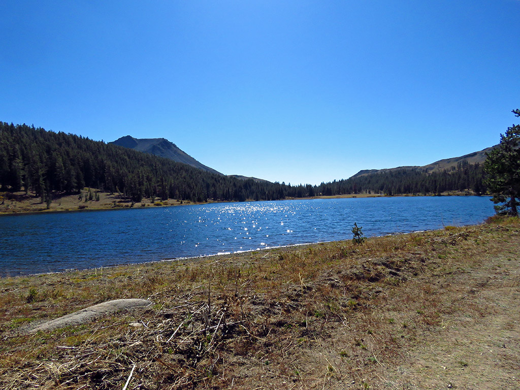 | The first and largest of the two Highland Lakes. There were two people parked at the shore and a couple at the second smaller lake. Not too bad for human infestation. This made me consider (briefly) camping here; however, when we reached the no services, no camp host campground, there were signs everywhere saying "no camping accept in the campground" with a $15 per night tax me more selfpayment box. Ya, for zero services, I'm going to donate $15 to the socialists? Fat chance morons. | ||