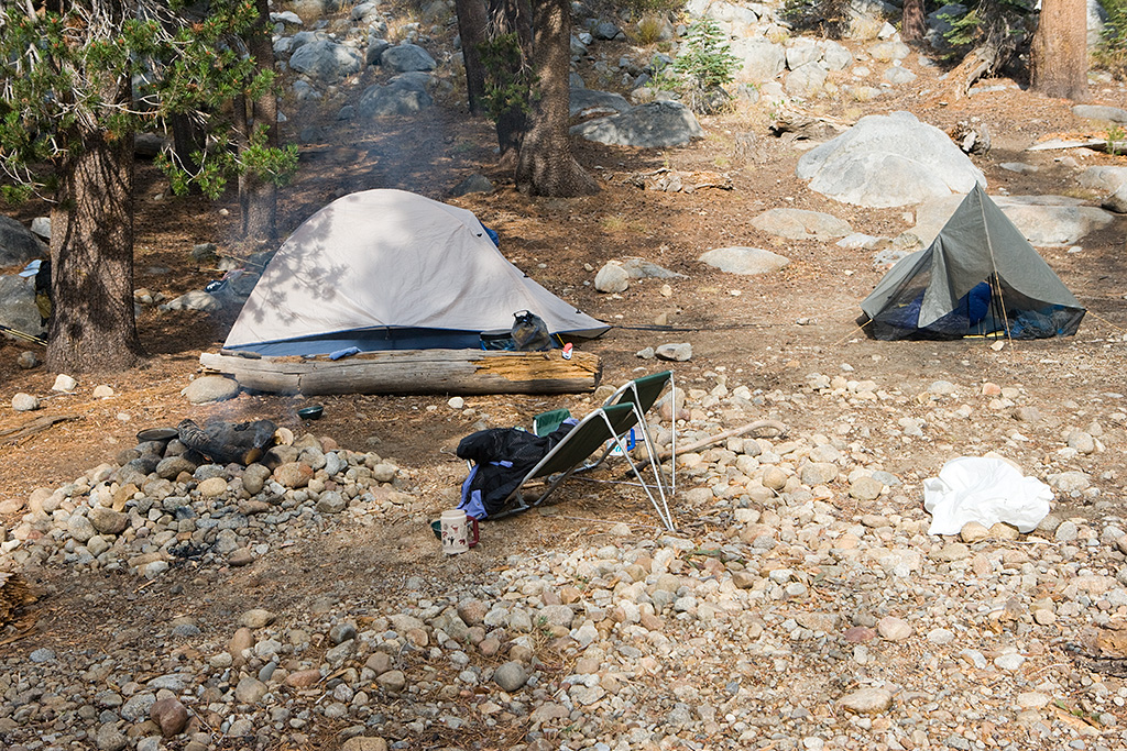 This is a picture of our camp the next morning. To be honest, the water in the pools was less than inspirational. We filtered it with our intake at about 50% depth. The upper section of the water looked like a parking lot puddle near a Jiffy Lube. Fortunately, I carry an excellent water purifier. By the time we setup camp, cooked and ate, it was after 8pm. Had we hiked on, we wouldn't have had dinner until at least 10:30pm. That's assuming we didn't injure ourselves in the dark or get lost. Good trips start and end with good decisions. Nothing creates heartache and danger more than trying to bite off more than you can chew. |
