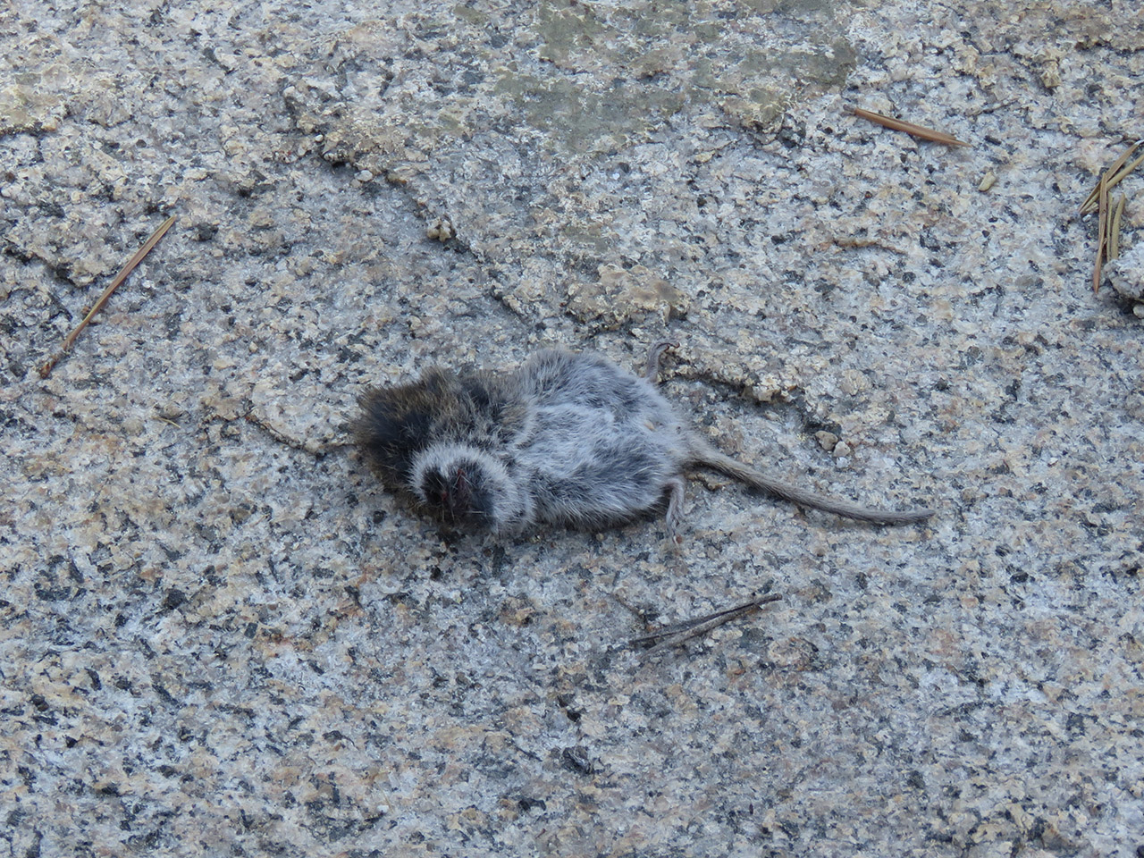 Ever wonder why suddenly your pack could get heavier when moving camp spots? Well perhaps it is because a mouse crawled into it to rest and you plopped your big bear canister right on top of him and then proceeded to hike for 8 miles squashing the snot out of the poor guy before arriving at Horse Meadow? Certain Gpa's wouldn't have to remove dead rodents from packs, if certain Gma's would look inside before loading the bear canister - just saying... :) |