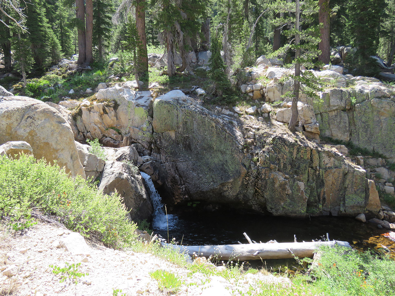 The next day we headed for the Grizzly Peak cutoff. This small waterfall caught our eye. |
