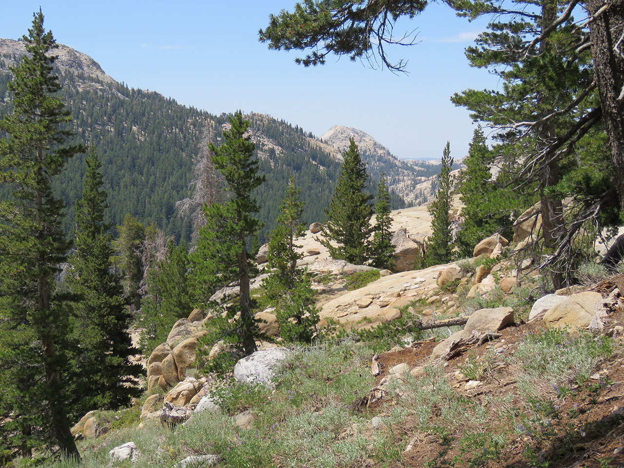 It is up, up, and up along our route. This is a view looking back the way we came. |