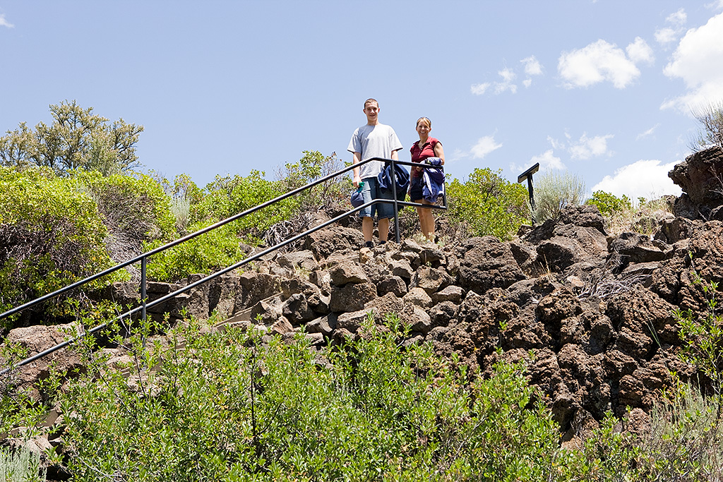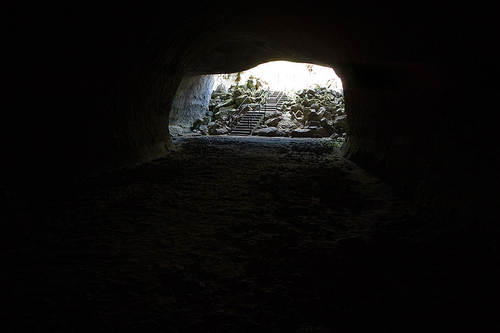 The lava tube's ceiling collapsed at two points creating an entrance and exit. Here we are just before heading in. |