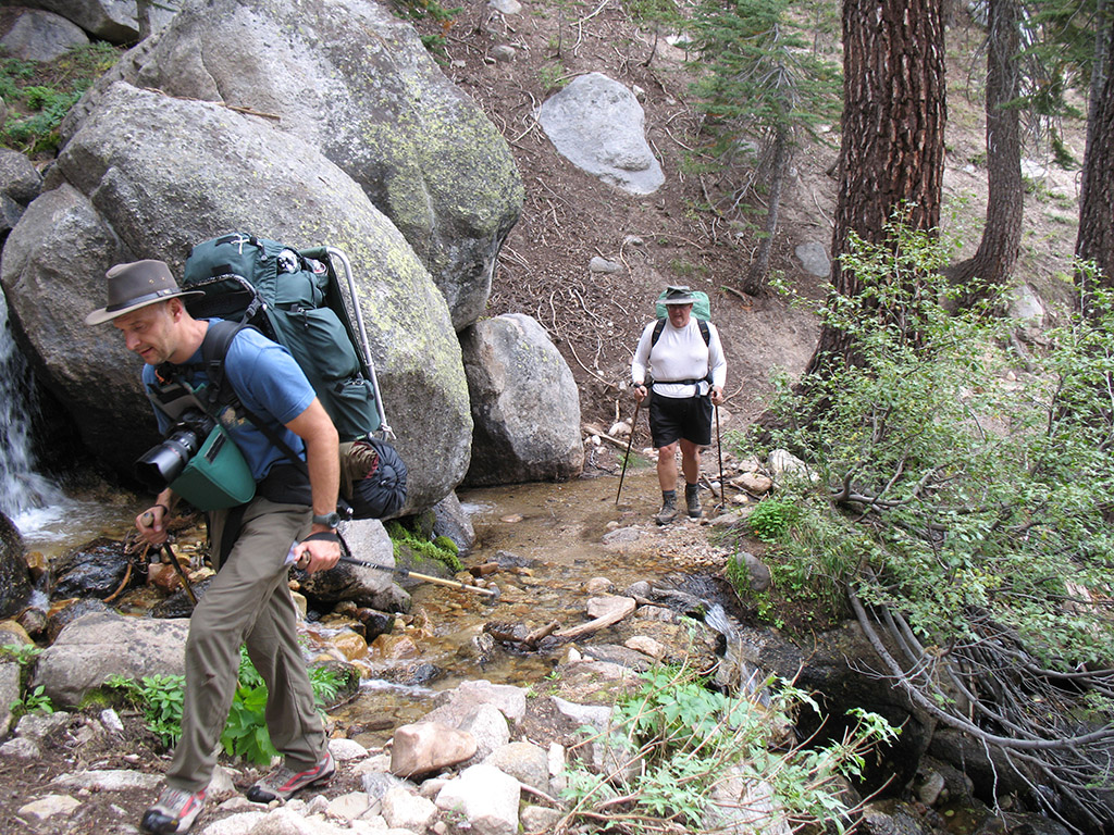 | Another stream crossing and double waterfall. There is a 20ft waterfall to my right and left on either side of the trail. | ||