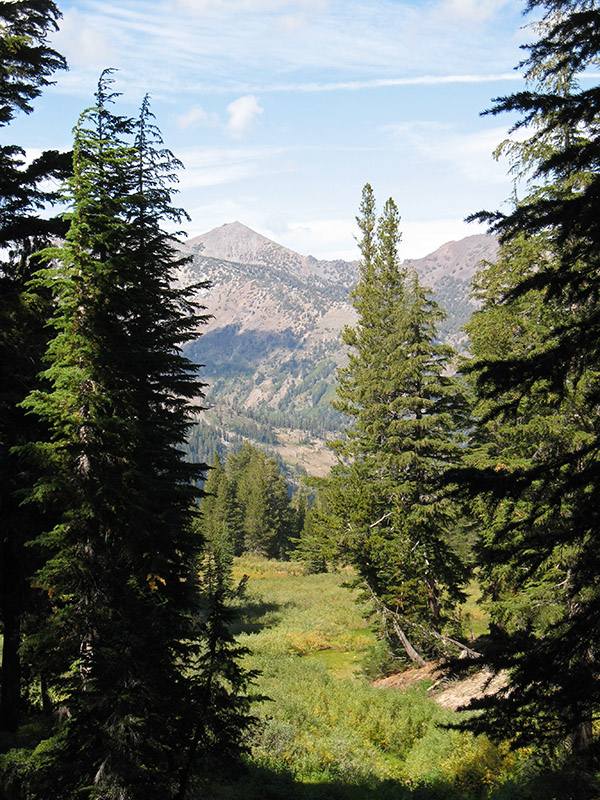 Looking through the trees and across another meadow, you can see the mountain range surrounding us. | ||