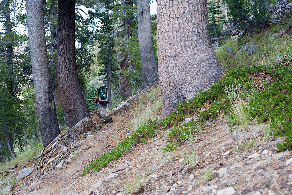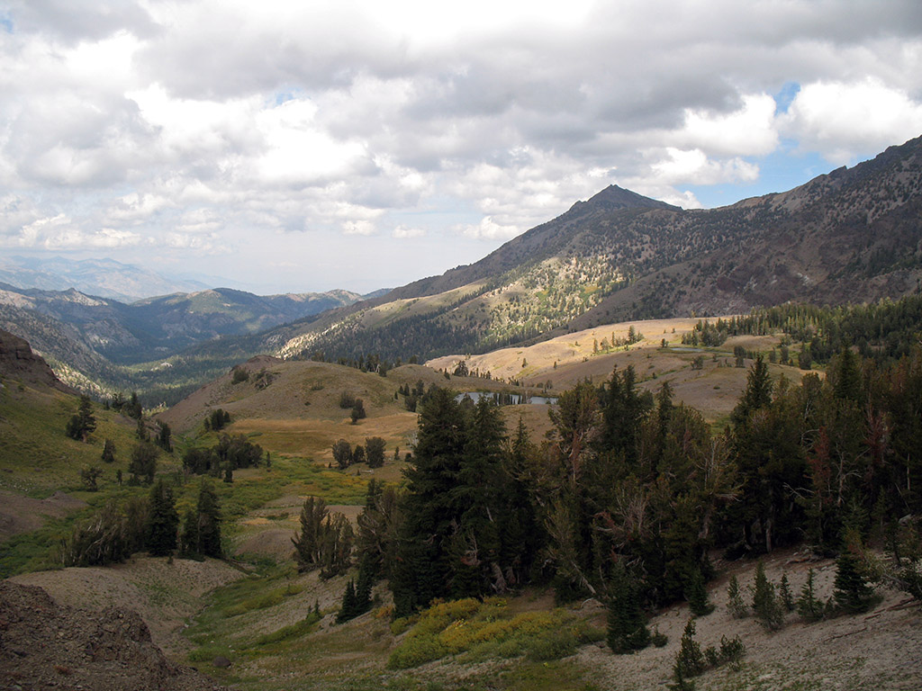 | We've made the crest and while standing at the top, we photograph the other side. That lake is our next and final campsite. | ||