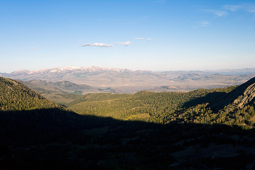 | Standing a lot lower down the mountain than Dave, I am completely in the mountain's shade. The temperatures at this elevation are cold when not in the sun. Although comfortable while moving, you get cold quickly when you stop. | ||