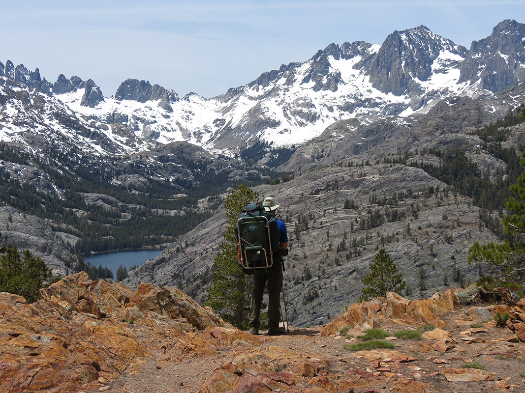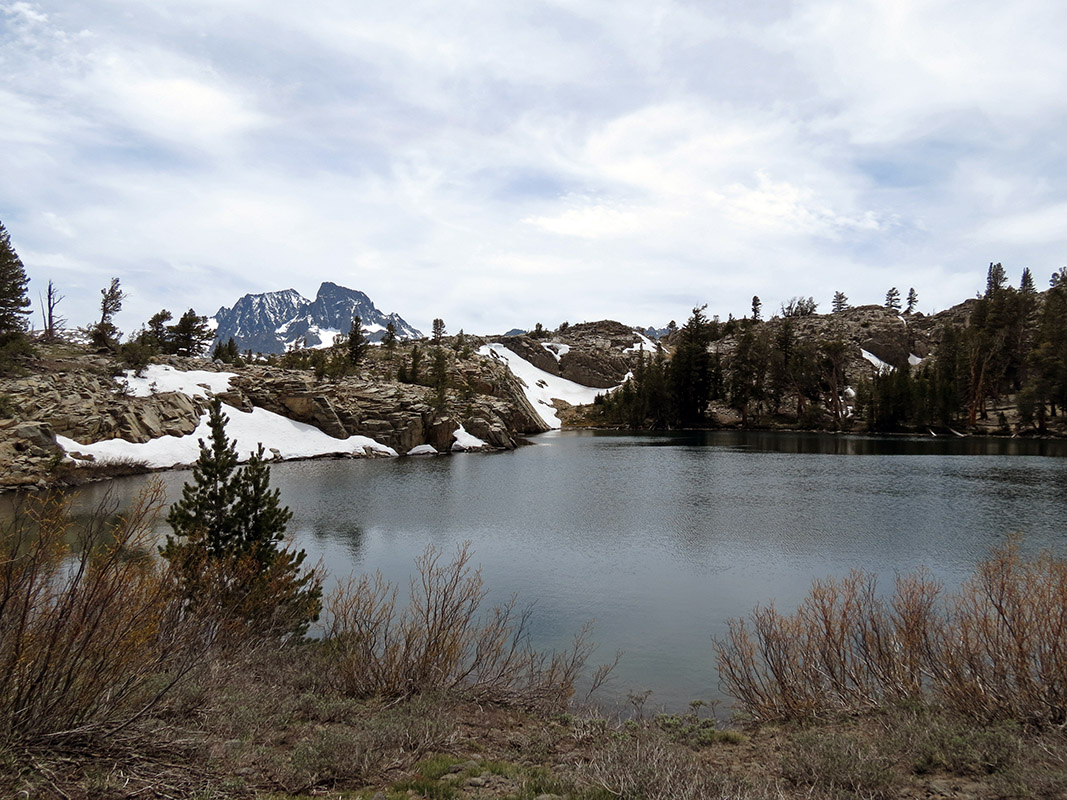 We reached Summit Lake fairly early in the afternoon. We set camp near the trail and figured there would be no way we could miss George and Dave as they walked through. Once we got our tent up, we walked back along the trail where we could see the trail drop down for a significant distance. Still no sign of George and Dave. We spent some time taking a few photos expecting them to show any time. |