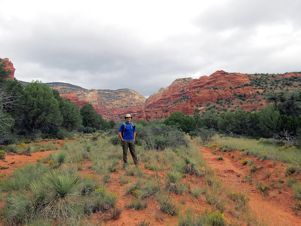 Our first little hike out of the car. We're just walking up the trail to those hills in the background. This is the trip where my doctor tried to explain that I was "dehydrated." Do you have a doctor with the typical God complex? A doctor who's science background could fit in a leaflet stored in a secret compartment in my shoe? Ya, me too. Anyway, the temps are cool because it is about to rain, and I'm carrying a half a gallon of water in my day pack, all to walk to those hills. Ya, I was dehydrated, my ass. |