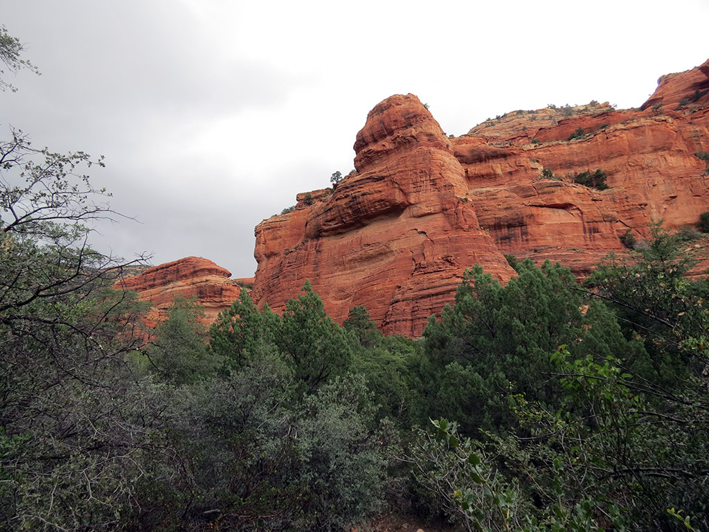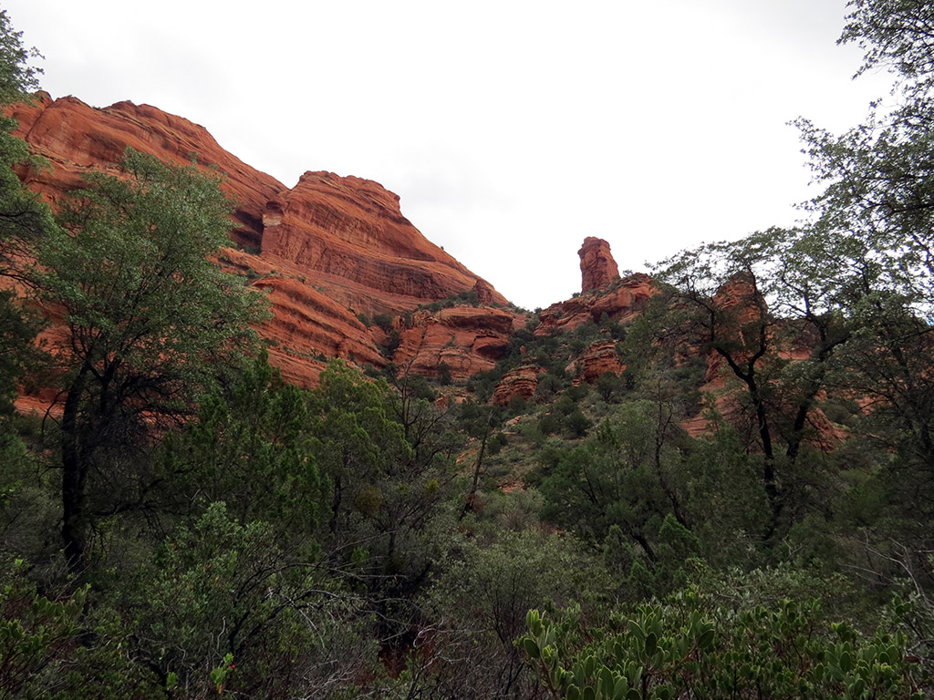 | We've reached the hills and have entered a small valley that dead ends a bit further up. The Red Rock Mountains certainly earn their name. | ||