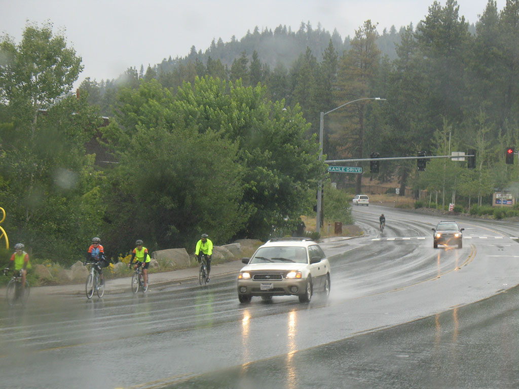 As we left the parking lot, I had Andra take a picture of some of the bikers coming in. As we drove back up to the steep sections, the rain had stopped. I wanted to get a picture of the water rushing across the roadway, but mother nature didn't cooperate. All in all, it was a very enjoyable ride and I was thankful we both safely navigated the rain storm's early arrival. It looks like we'll have to wait until next year to set a new record. (Now - don't you couch potatos out there feel like slackers?) |