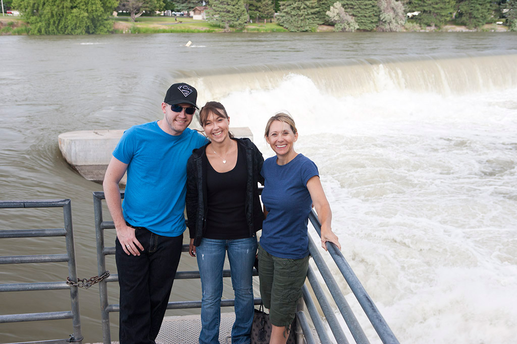 | Over the years we've made three trips to Yellowstone and we've always broken up the drive by staying one night in Idaho Falls. Before dinner we snapped a few photos along the river. This was Doug's first camping trip. Many interesting sites lay ahead for all of us. | ||