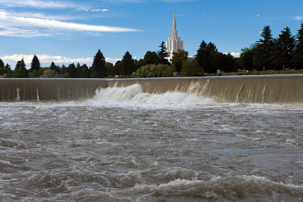 | No pictures of the Snake River would be complete without the Mormon Temple in one of them. I'm pretty sure that guy on the top is facing towards the new NSA data center in Utah and he's giving them the finger, but you be the judge. | ||