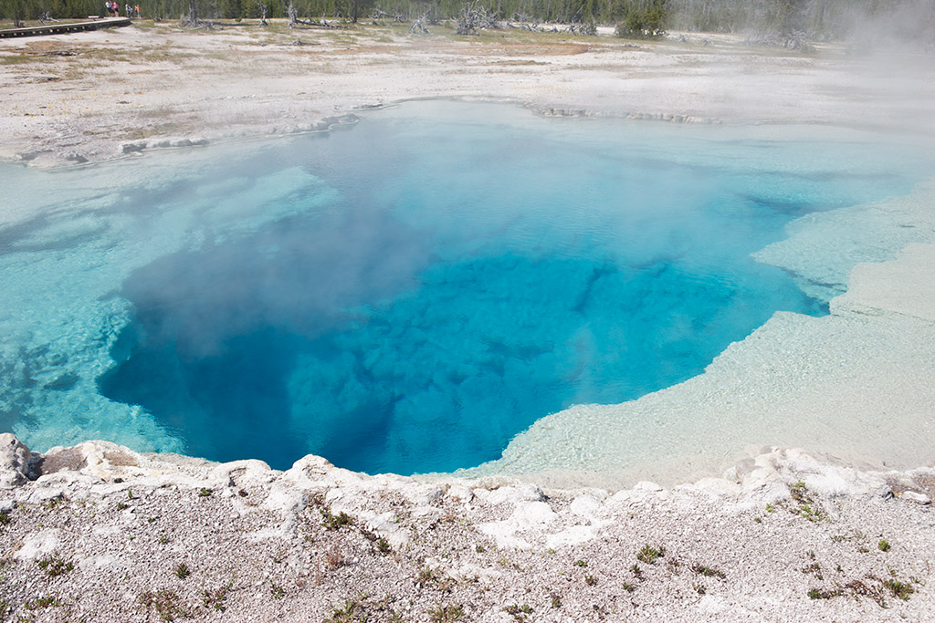 We've now moved across the road to Biscuit Basin and this is the magnificent Sapphire Pool.