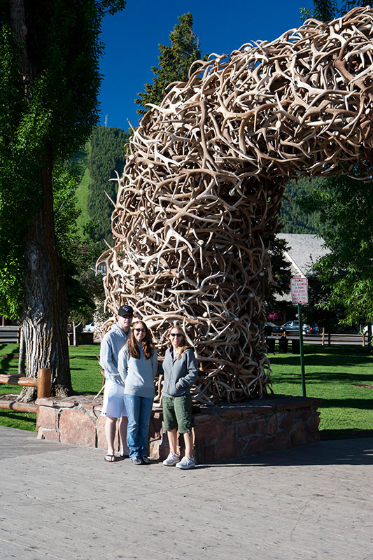 Our crew poses for a picture near the antler arch as we wandered around the various "gift shops." |
