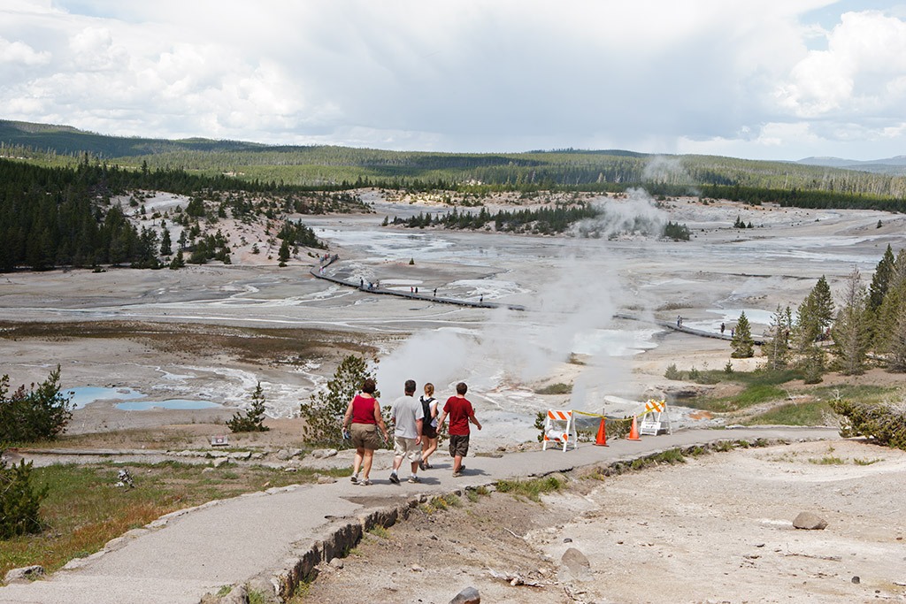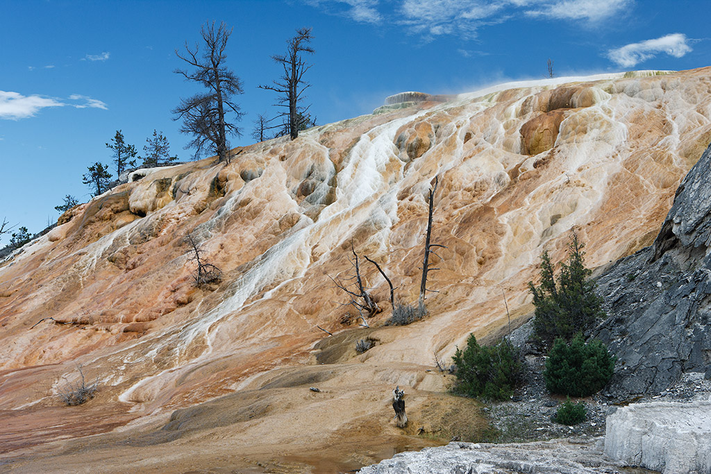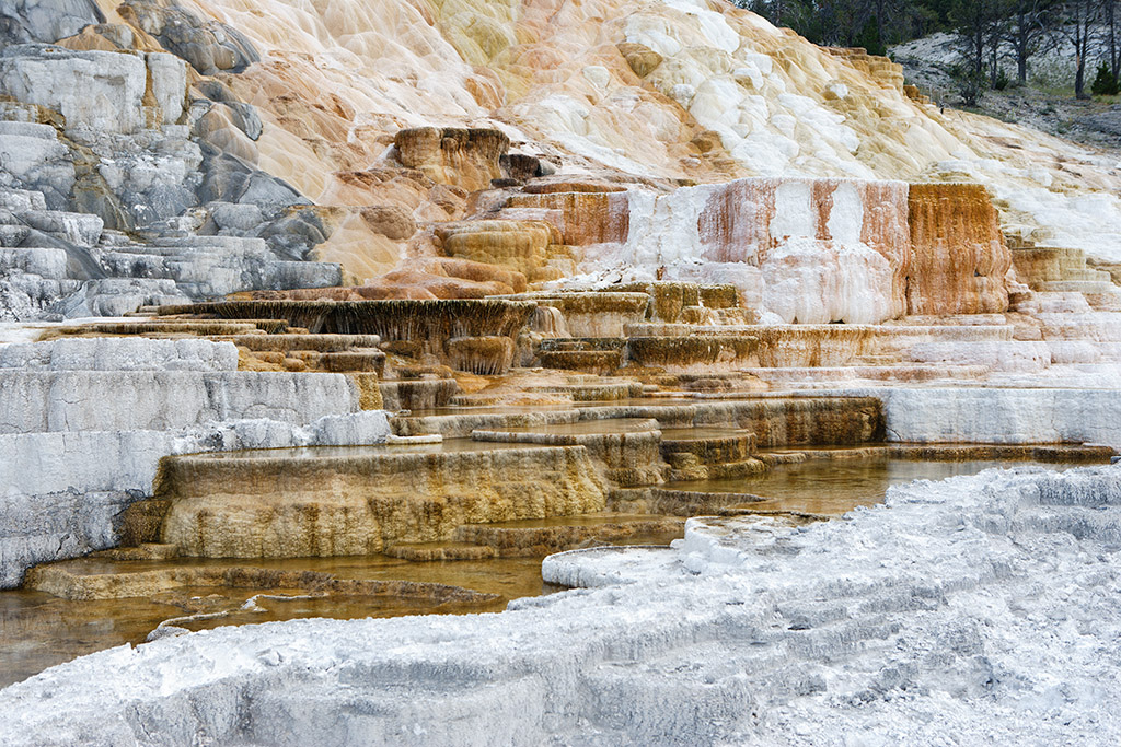 | We've now driven north to Mammoth Hot Springs. The travertine terraces here are spectacular. | ||