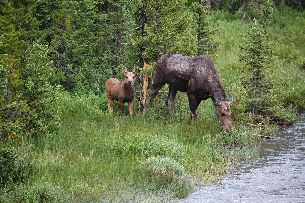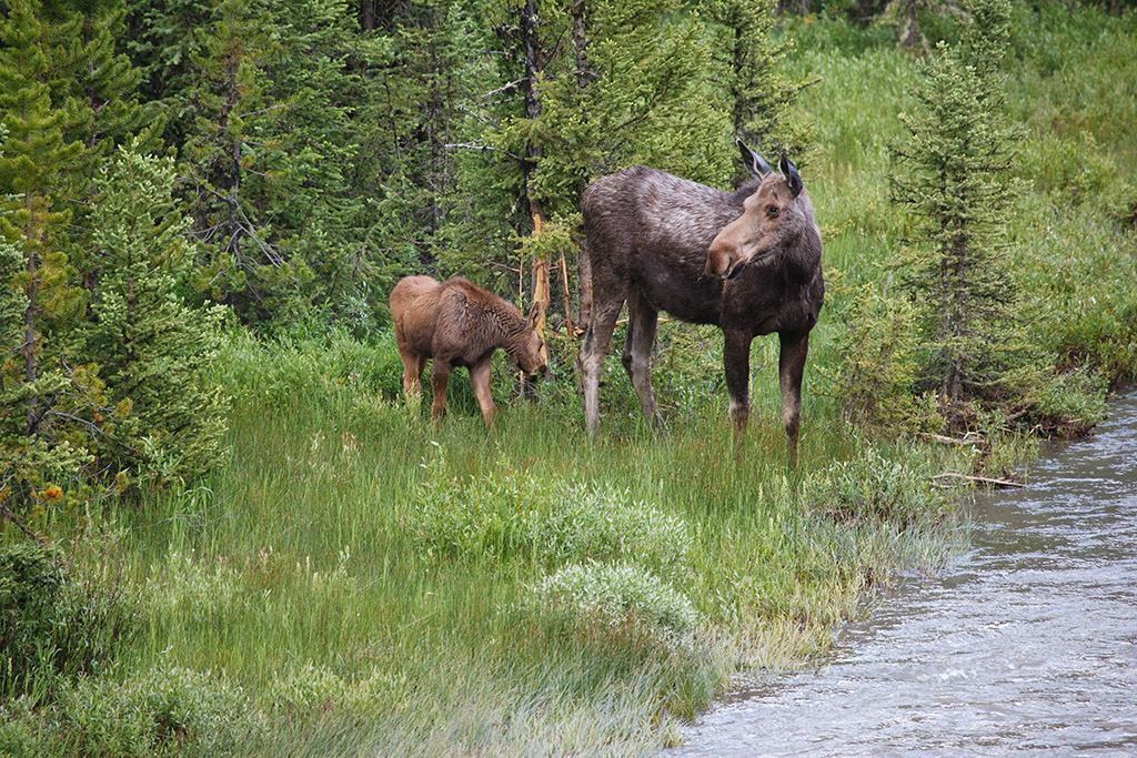| We were running out of light and time, but just before we gave up, we spotted this moma and baby moose. | ||