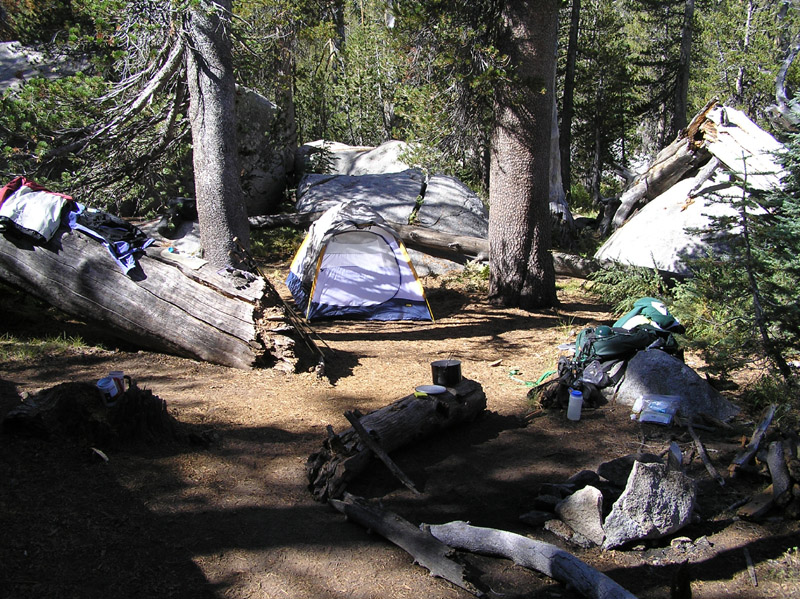 | A look at our camp in the daylight before we left the next day. You also get another look at the reengineered fire ring from a different angle. | ||
