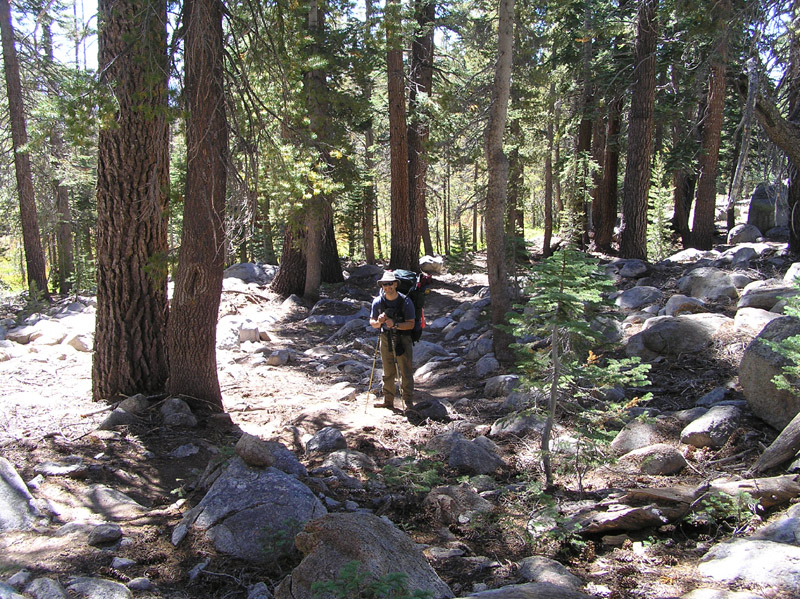 | Andra got a few shots of the trail along the way. Once off the popular Clouds Rest trail, we hiked for hours without seeing anyone. | ||