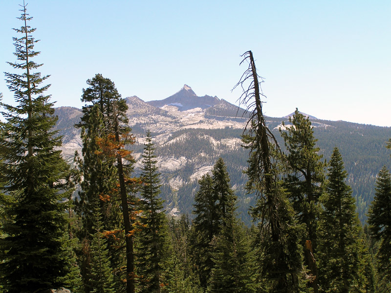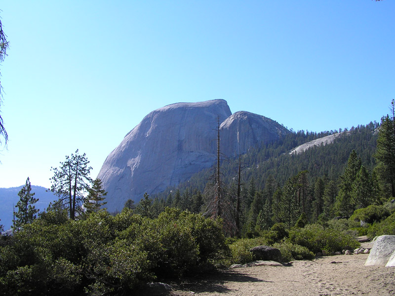 | We continue to lose elevation as we drop into Little Yosemite Valley. Here we got a great look at the back of Half Dome. The sub-dome on the right is where the California Conservation Core is rebuilding the switchbacks. Monday through Thursday, the trail to Half Dome is closed 7am to 4:30pm. | ||