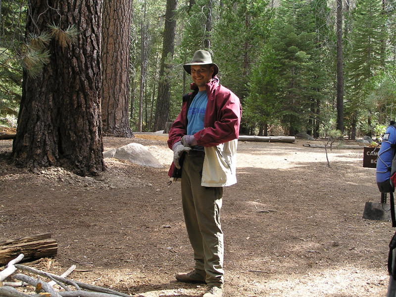 | With the heavy clouds continuing to move in, I've spent the last half hour gathering a substantial amount of firewood. Here I am about to break up the pieces into more reasonable lengths. Heavy thunder is starting to crack on the mountains to the South. | ||