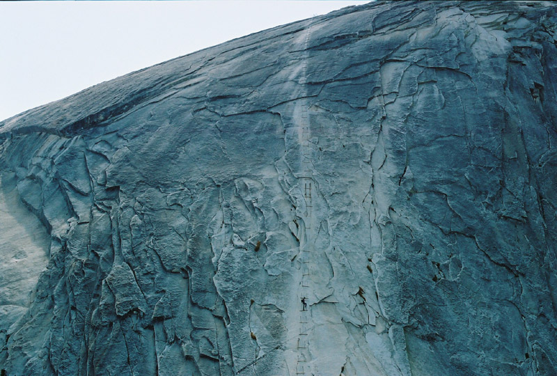 | We've now reached the top of the sub-dome. You can see a lone man on the cables. The cables stretch for 600 vertical feet. | ||