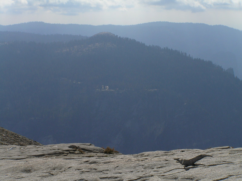 | From this side of Half Dome, the Glacier Point parking area is clearly visible. | ||