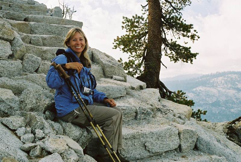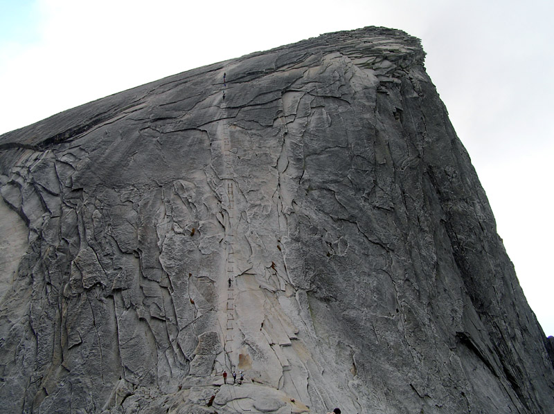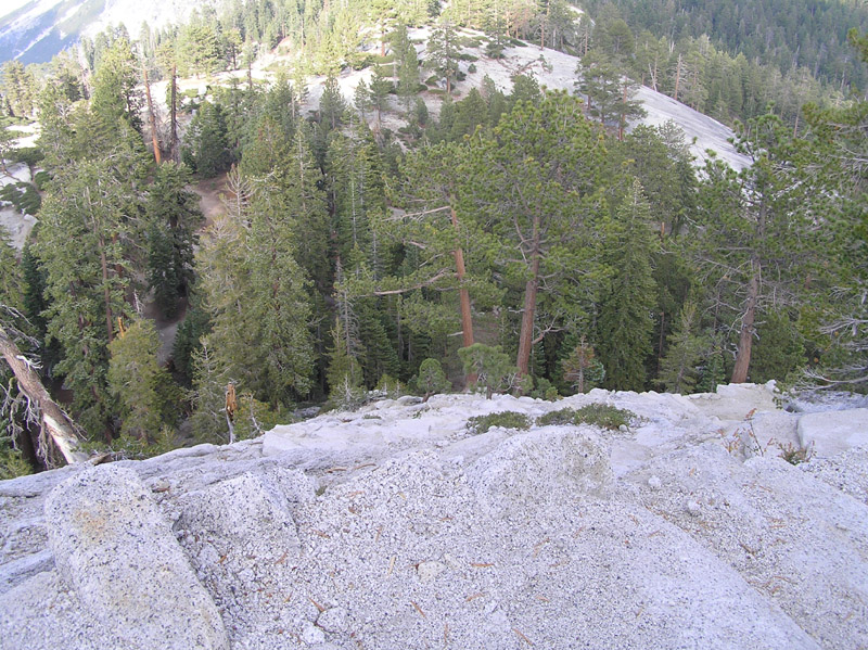 | At the edge of the sub-dome looking down. It may appear to be nearly straight down, but this is actually the trail! The trail switchback's down this slope. It is always right around in this area, that I invariably ask myself what possesses me to climb up here repeatedly. I never get a very good answer and generally come to the conclusion that I'm an idiot. |