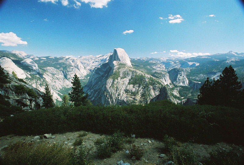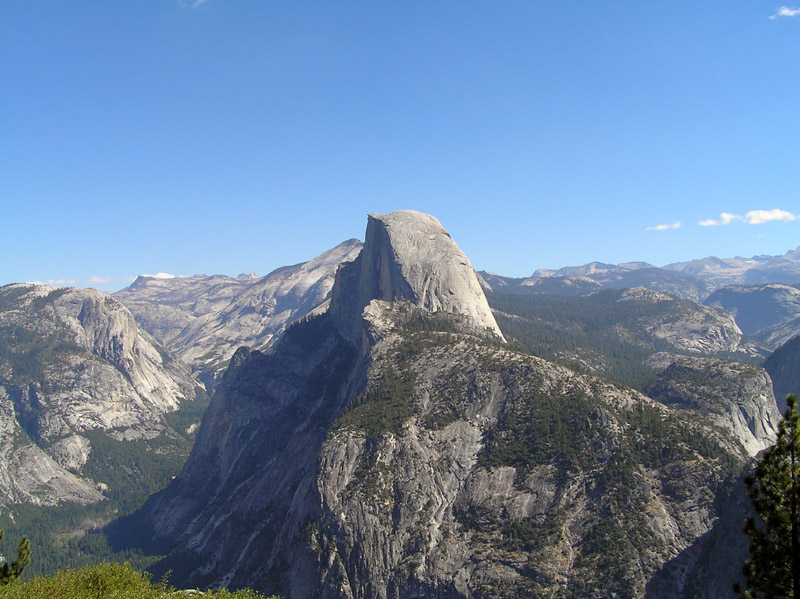 | Two days ago we stood on the top of Half Dome and looked across to Glacier Point. Now at Glacier Point we get to look back the other way. |