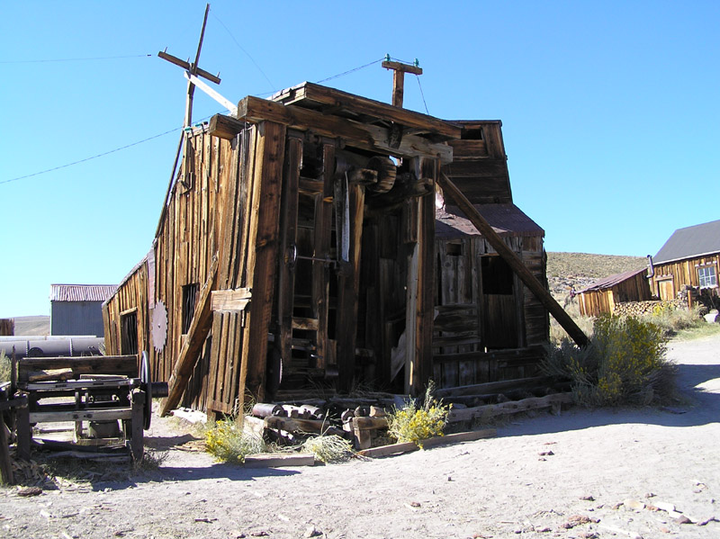 Leaving Mono Lake, here we are at the old ghost town of Bodie. Brian and Brett stand in one of the old mine elevators. More historical detail about Bodie can be found here. The Bodie info starts on Mammoth Page 13. |