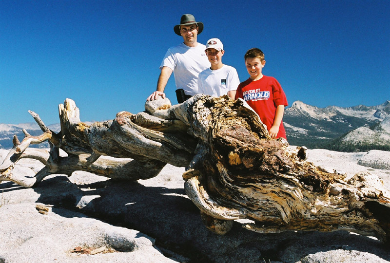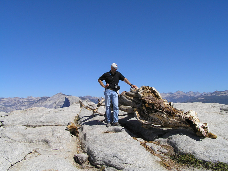 | I was saddened to find the tree at the top of Sentinel Dome had collapsed. It was only a matter of time after it died, but a shame none-the-less. With idiot tourists pulling and hanging on it, it is a miracle it lived and stayed up as long as it did. See my trip in 1999 to see it still standing (already dead). My dad and Aunt both have pictures of it when it was still alive. | ||