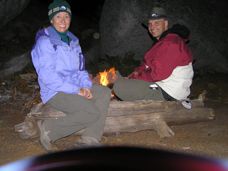 | Here we are enjoying the fire. Currently at 8900ft the temps weren't quite as cold as the prior night, but darn close. | ||