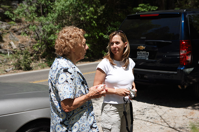 Having just passed the junction of HWY 120 and 140, we had to stop to look at the raging Merced River. With the Tuolumne River basin's snow pack at 179% of normal, the Merced River basin at 192%, and courses above 7500 ft at 210% of normal, the prior week's hot weather created thundering water flows. Mom looks in amazement at the crazy river. My mom had not been to Yosemite since I was 14 years old (26 years ago). |