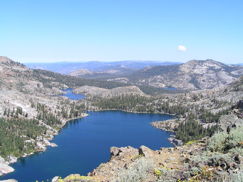| Before dropping down the backside, who could resist another look back at Dick's Lake and Fontanillis Lake? | ||