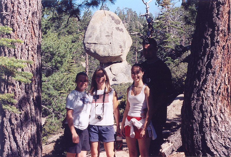 | Here is a simply horrid photo of the group with the 130 ton balancing rock in the background. You guessed it, this is one of two properly exposed photos from my camera. The rock looks great, but I should known better when it comes to the shadows. | ||